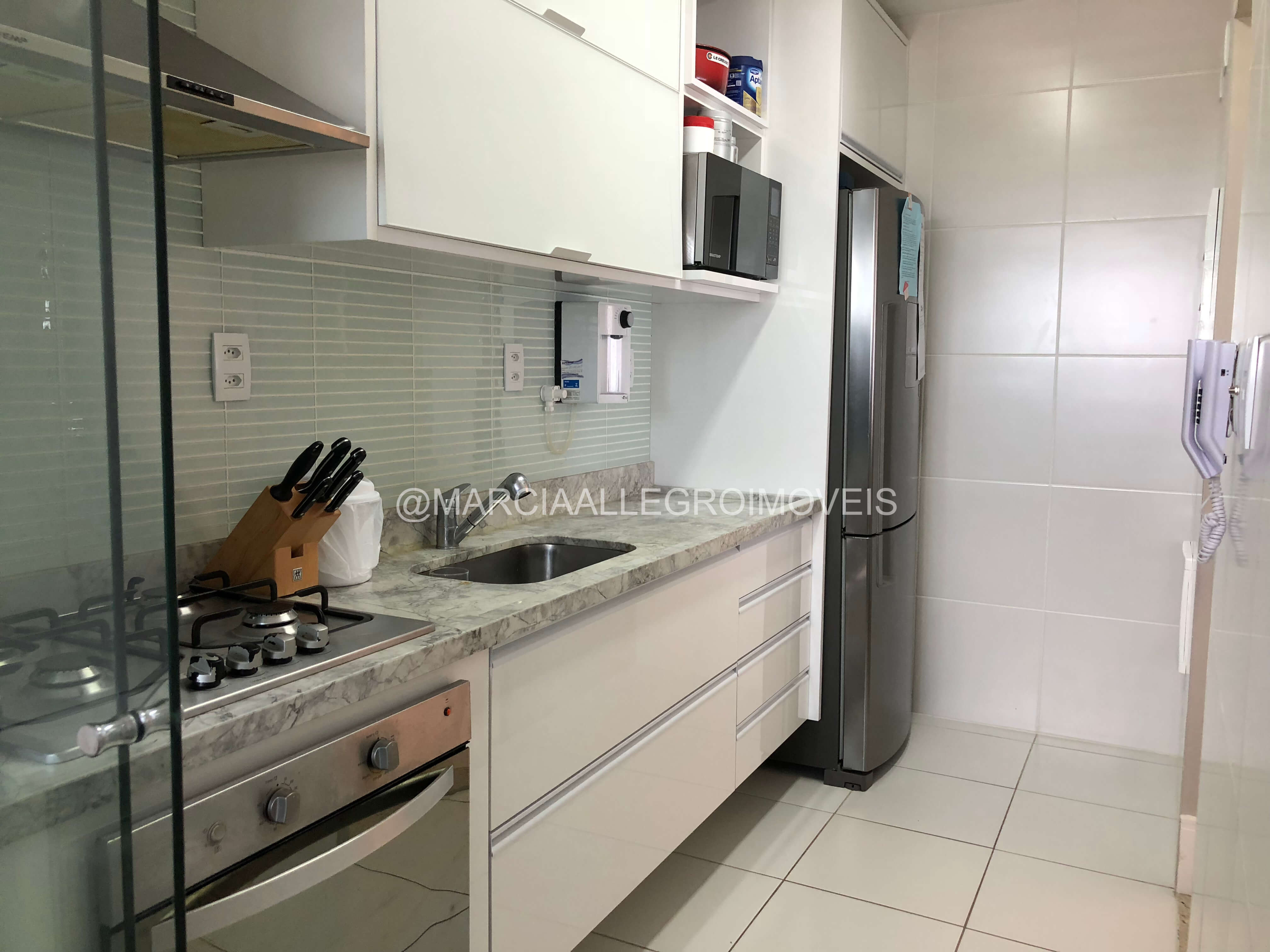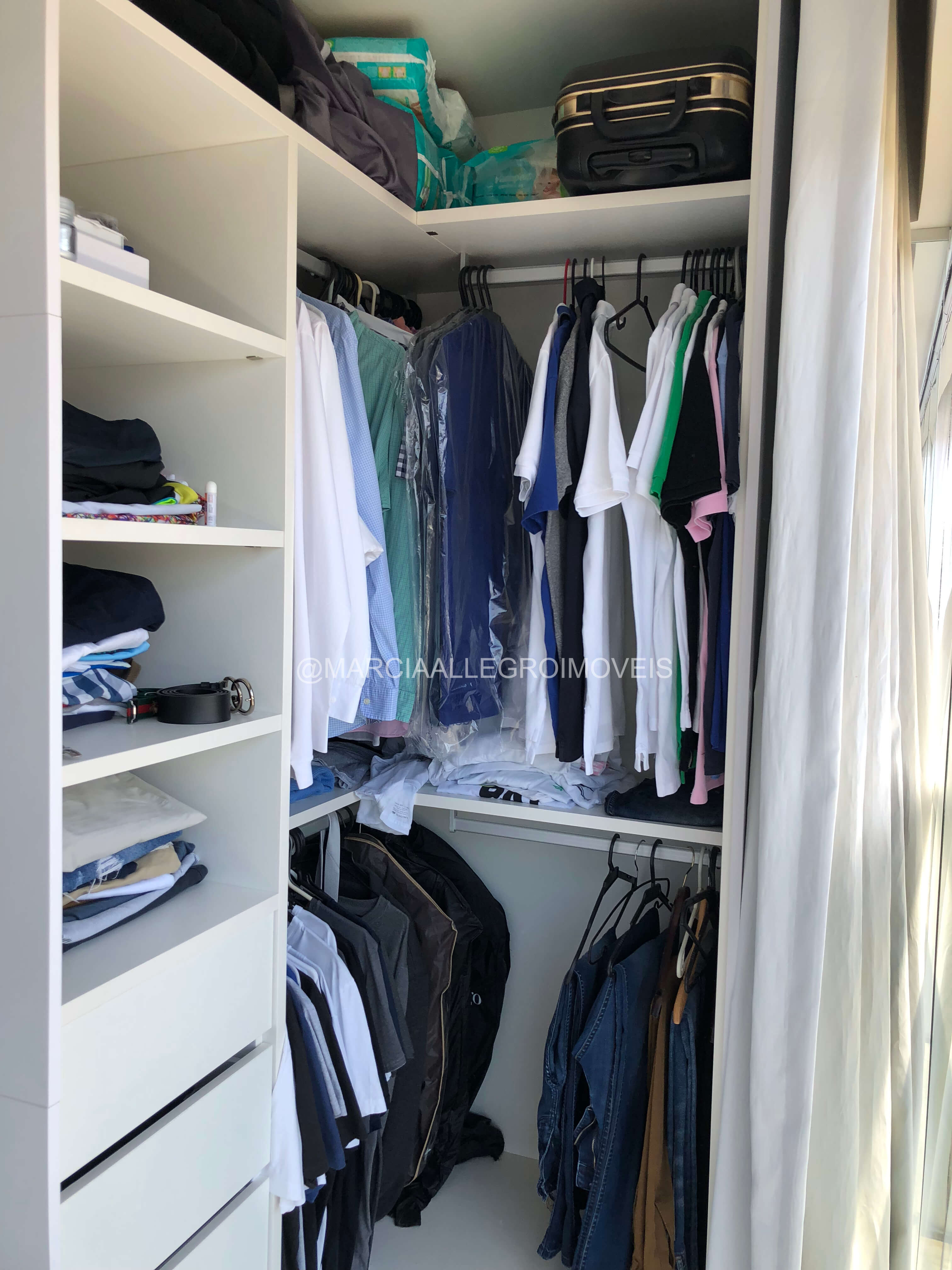 O imóvel possui 2 quartos, 1 suíte com closet, ampla sala integrada com a varanda, cozinha, pequena área de serviço e 2 vagas de garagem.