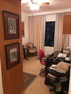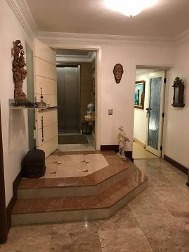 Apartamento super amplo com 400m2 de área privativa, 4 quartos, sendo 3 suítes, suíte master com 2 closets e gabinete, 4 salas (jantar, íntimo, estar e 2 livings), cozinha e área de serviço super amplas e varanda. Piso das salas de mármore bege bahia, piso dos quartos de durafloor. 4 vagas de garagem soltas.