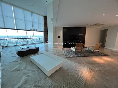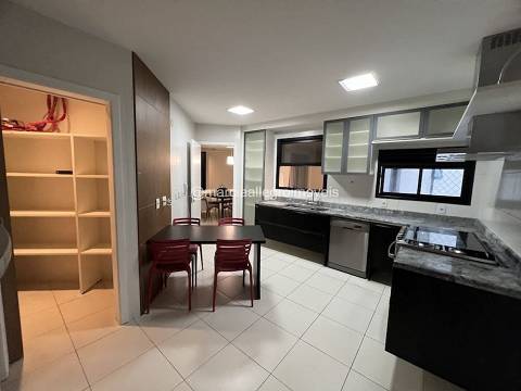 Apt com pé direito duplo, piso das 4 salas de mármore bege bahia, todas as suítes tem closet com armarios ornare. Cozinha e área de serviço com armarios kitchens. Apt todo climatizado.