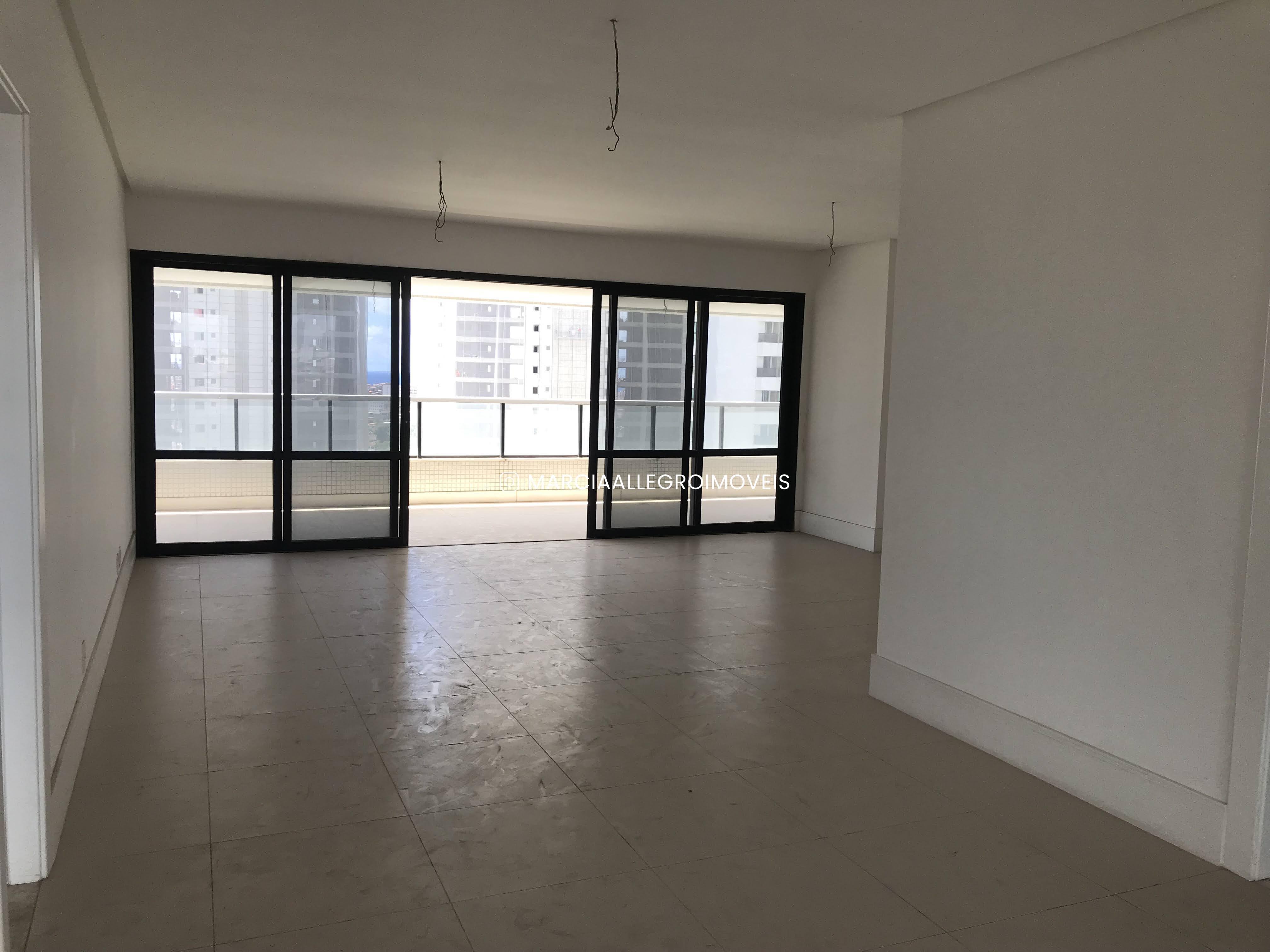Todo Apartamento está com piso de porcelanato bege , possui um varandão com vista pra cidade além de outra varanda Gourmet ambas com ventilação cruzada. E ainda possui na entrada um Gabinete com banheiro completo que pode ser uma 5 suíte .