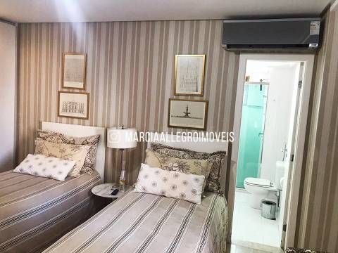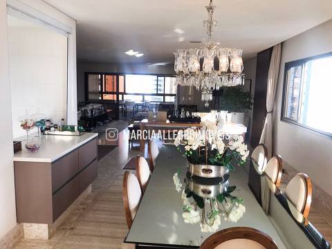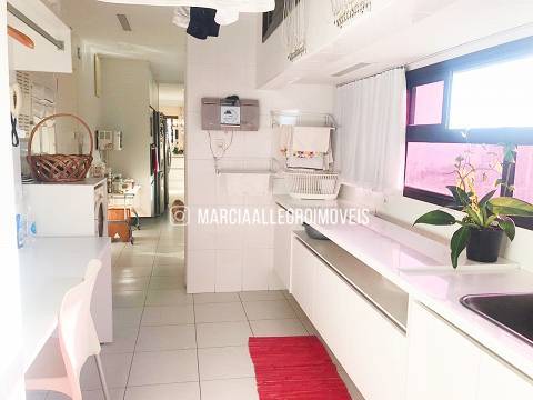 Apt super ventilado, com vista mar da varanda até a sala frente fundo, sala super ampla, piso mármore Boce Bella 1,20X1,20 sala e e corredor, 4 suítes e cozinha KITCHENS, E dep/ de empregada da KITCHENS. Suítes completas de Armários da Detalhe.