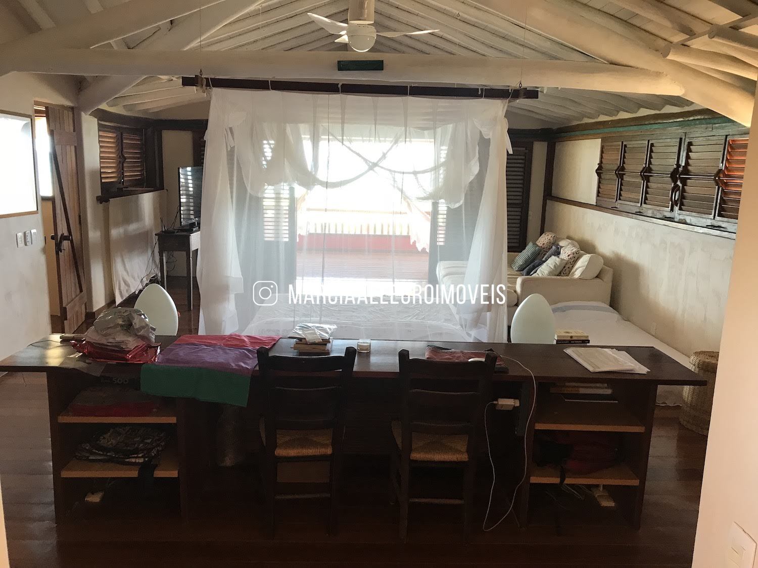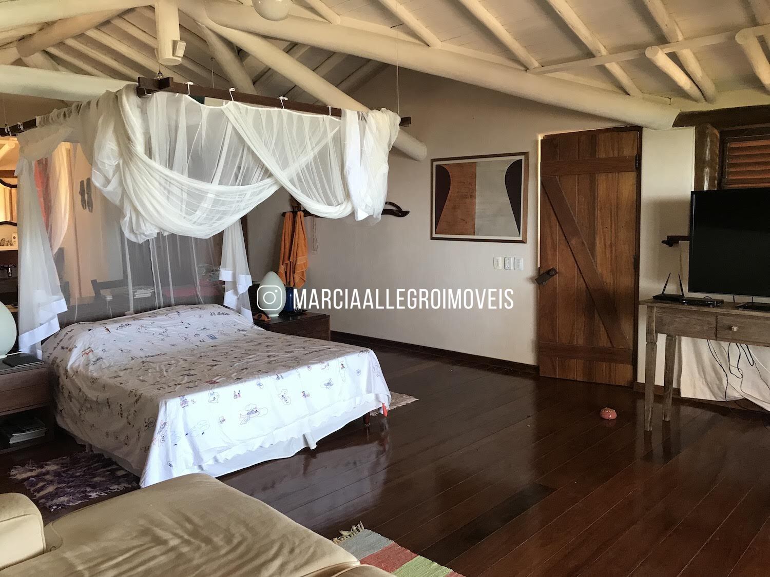 Casa frente mar em Busca Vida com amplo terreno de 6.670m2, 1000m2 de área construída, 33m de frente para o mar e um recúo de 60m da praia. Projeto do arquiteto de Trancoso Ricardo Salen; a casa possui 5 quartos, 4 suítes com banheiros amplos; sendo 3 suítes no térreo e uma suíte master com 80m2, super varanda e vista mar, no pavimento superior. Além de 6 varandas, 4 salas, lavabo, espaço gourmet, cozinha, dependência, casa de caseiro completa, canil, depósito, e um porão com capacidade para 21 mil litros de água.
