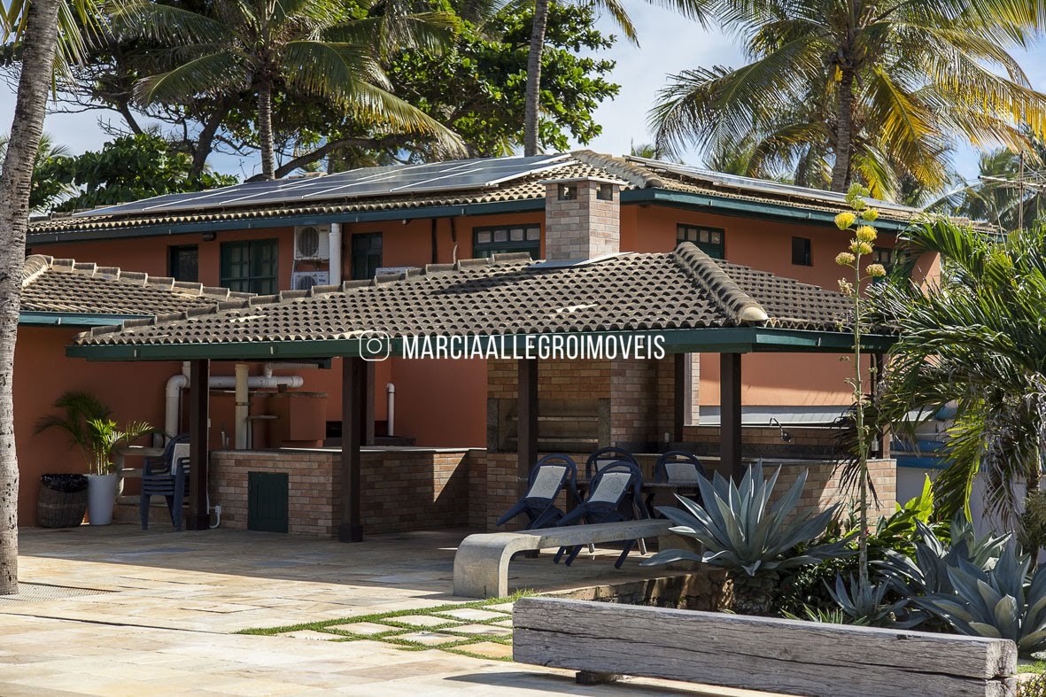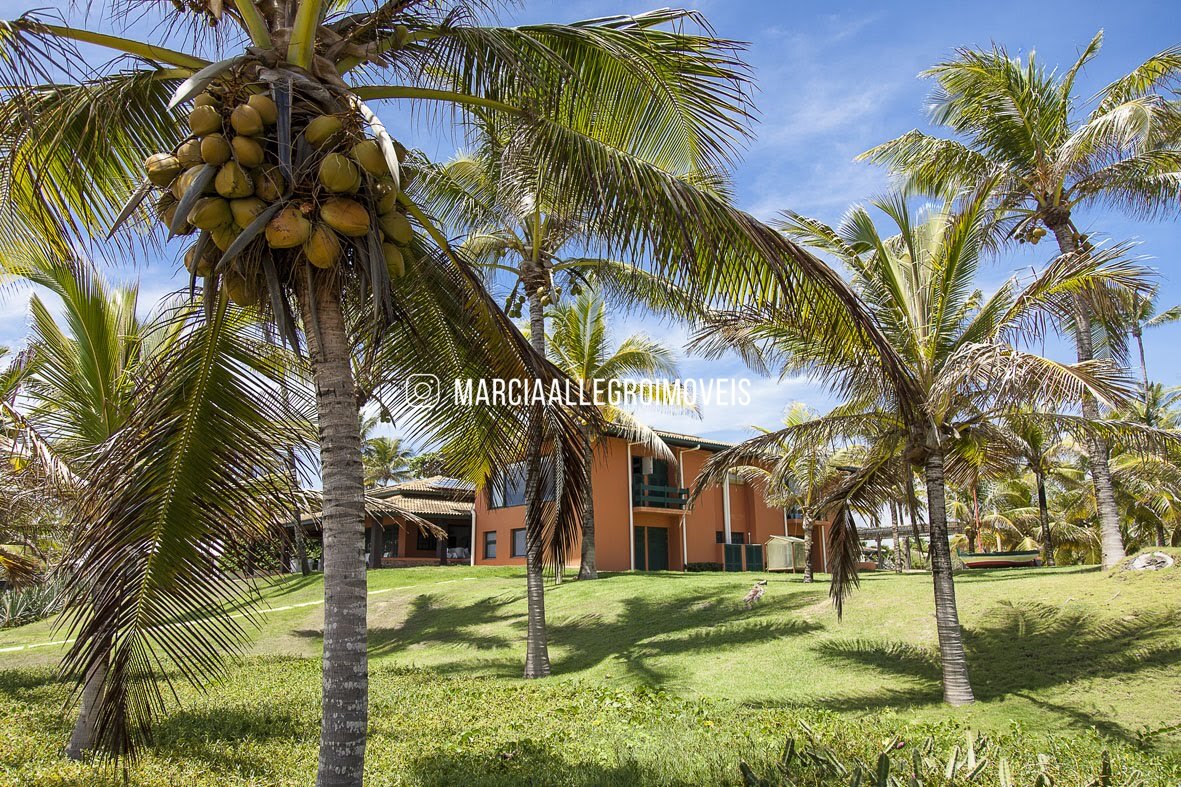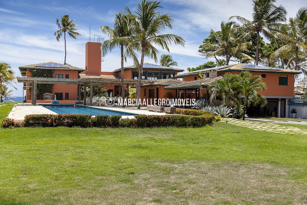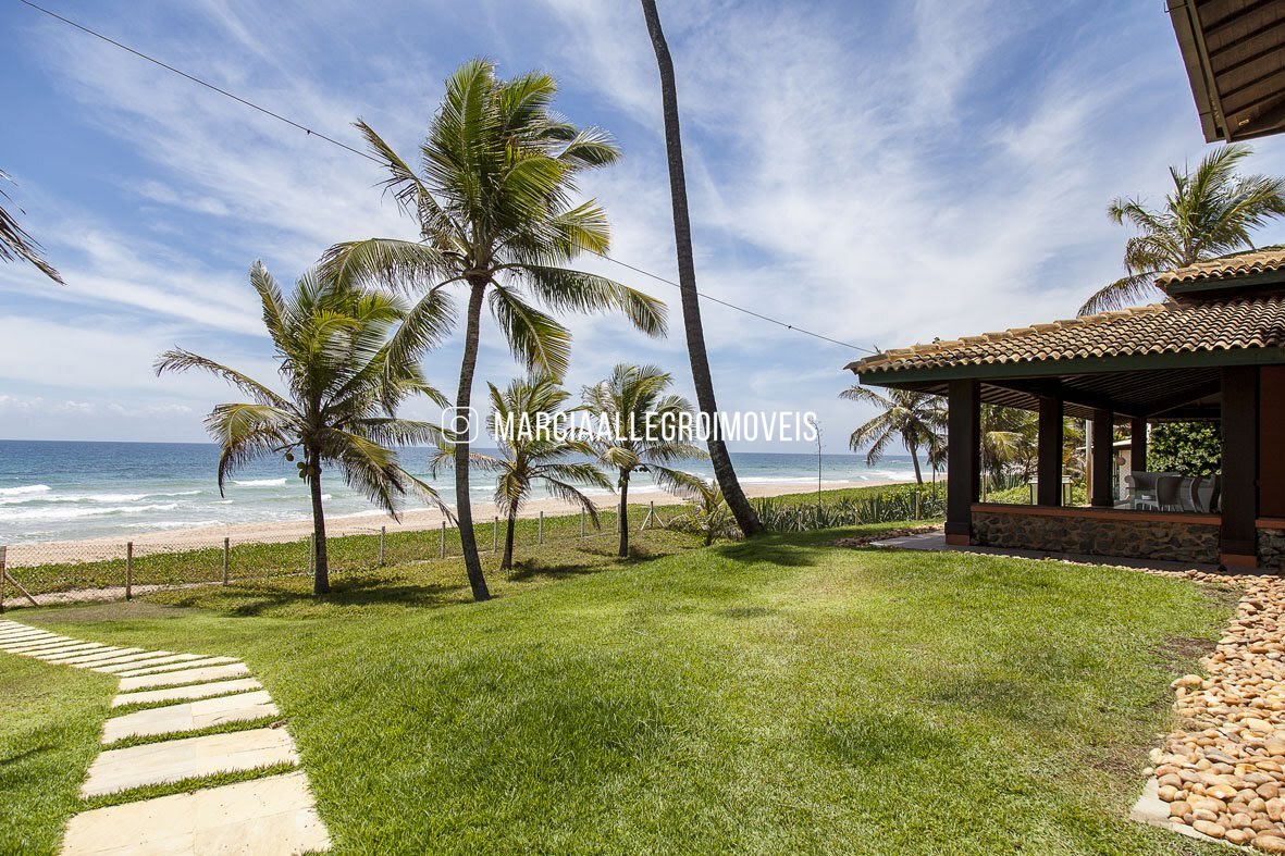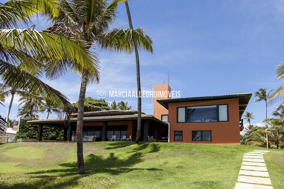 Casa pé na areia com 50m de frente para o mar e com 2 pavimentos. Possui 4 suítes no térreo e 3 suítes  na parte superior, sendo 1 suíte super ampla. Piso de cerâmica bege, sala ampla com vista mar, varandões, 3 salas, piscina, 2 lavabos, cozinha, 4 dependências, 2 dispensas, 2 pavimentos, nascente, Tanque subterrâneo que coleta toda água da chuva para o jardim, com irrigação automática.