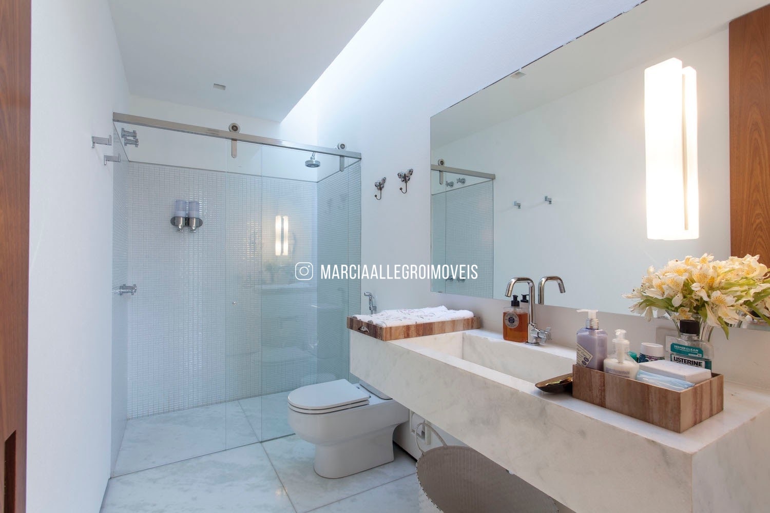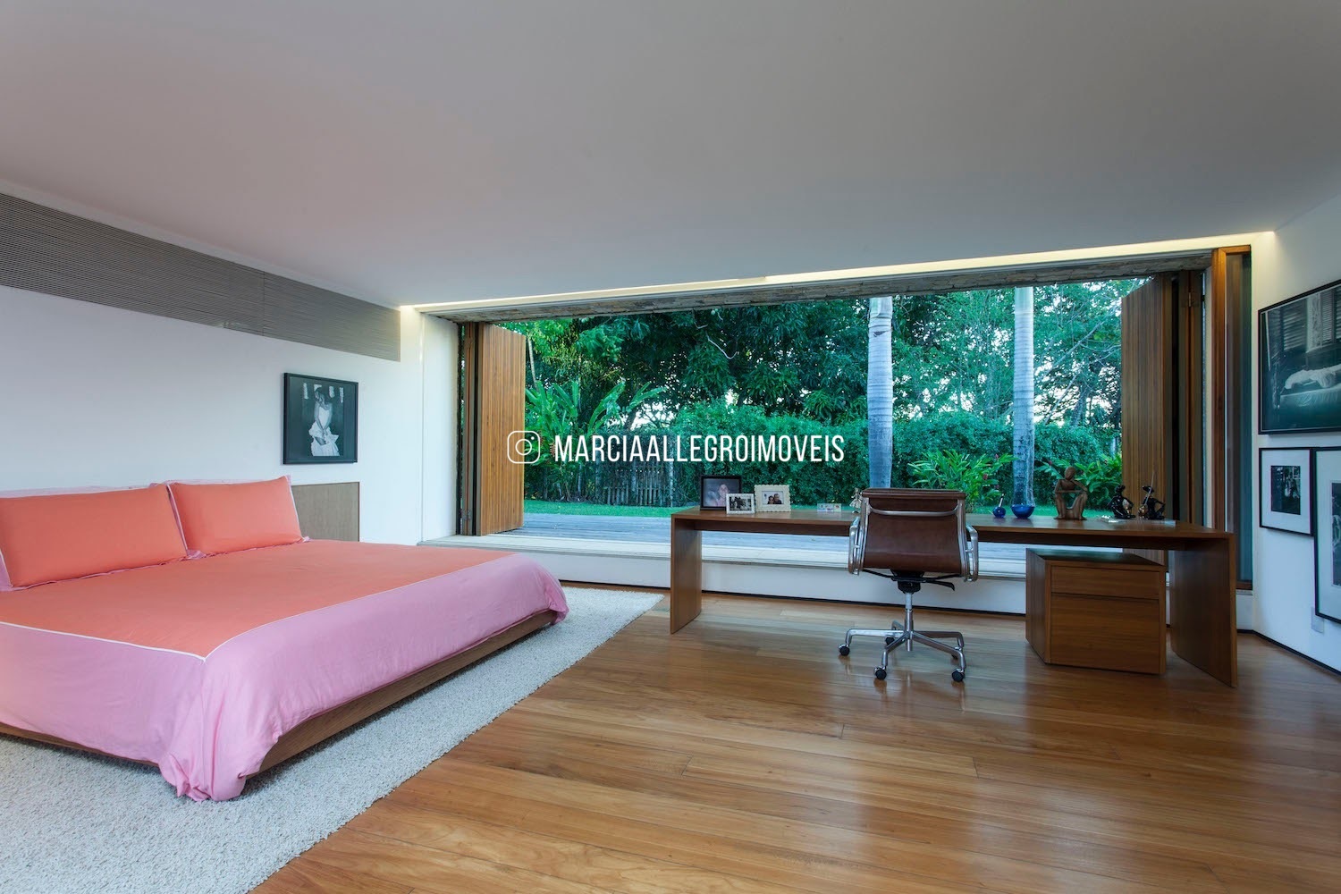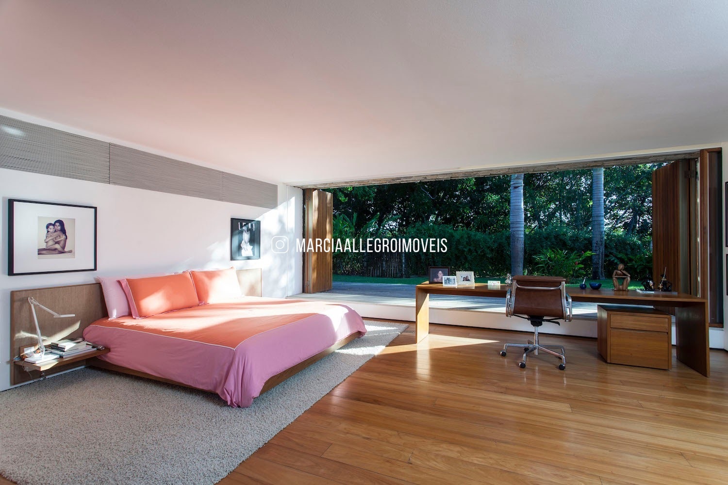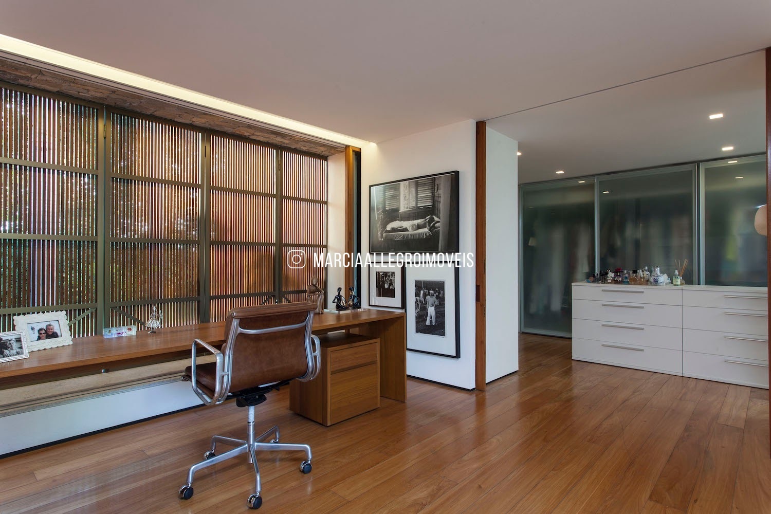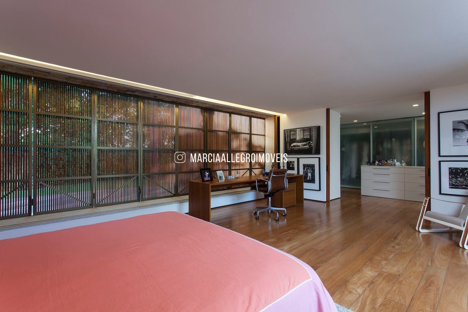 A casa dispõe de 4 suítes, 1 escritório, 1 sala de TV, 1 biblioteca e 1 sala de atividade física. Suíte master principal com um closet de 33m2 e 2 banheiros completos. Todos os armários são da Brumol (de Santa Catarina), piso de madeira peroba-rosa em todos os cómodos da casa. Cozinha com armários em madeira Freijó da Brumol. Garagem para 6 carros livres, 2 quartos com banheiros feminino e masculino, cozinha e copa para funcionários, armários em toda extensão da garagem, para malas, equipamentos e materiais de uso não diário.