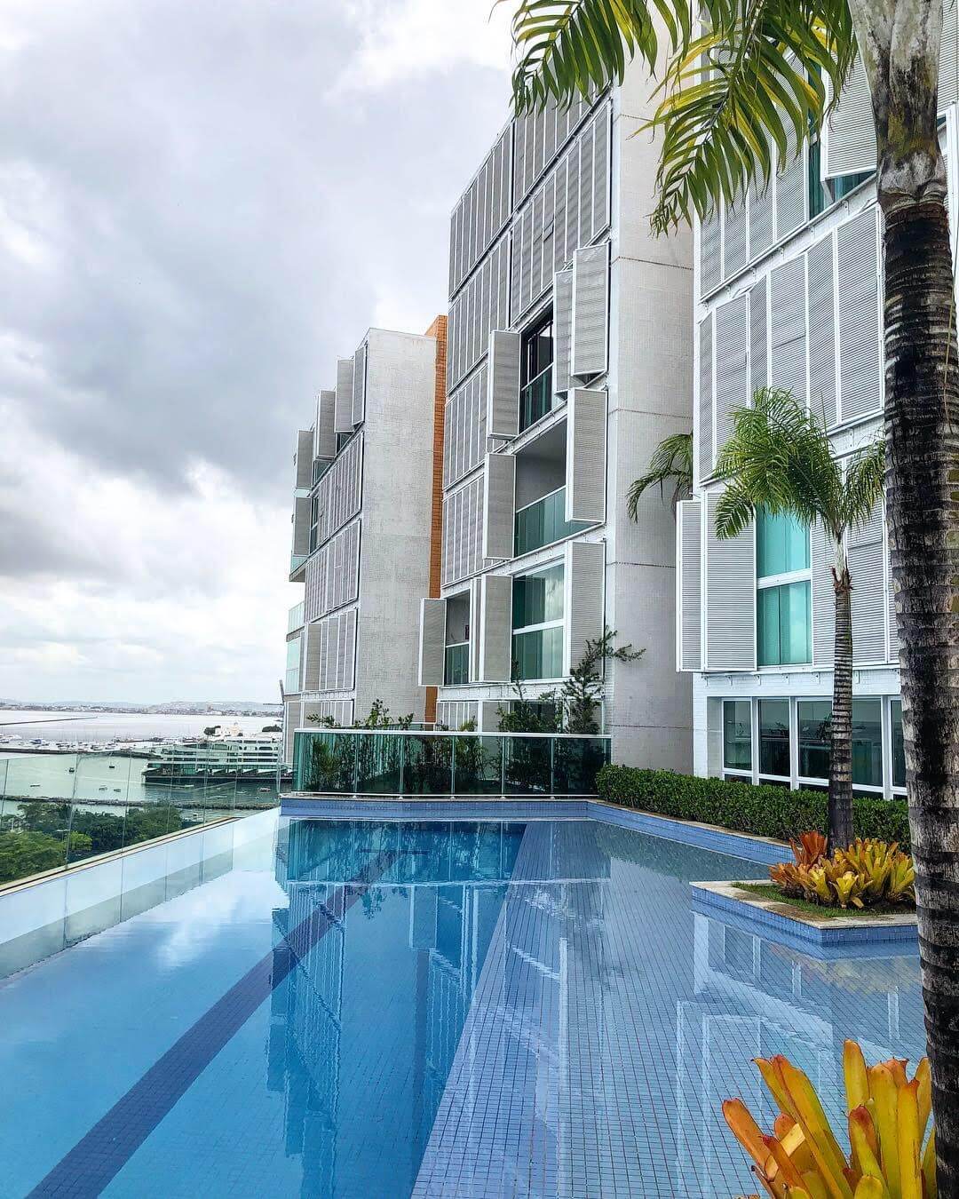 Apt 1 quarto e sala no Cloc Marina Residence, Av. Contorno. Vista maravilhosa para o mar e para a Bahia Marina. Empreendimento com total infraestrutura de lazer, piscina com borda infinita e vista mar, apartamento do jeito que a construtora entregou, com piso de porcelanato, porta de correr que separa a sala do quarto, banheiro social e demais especificações originais.