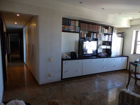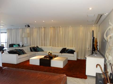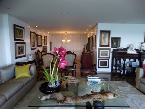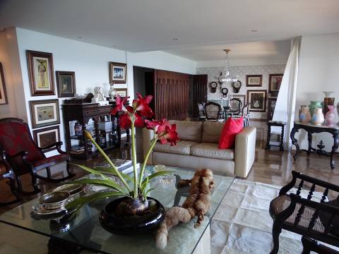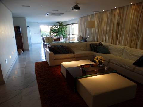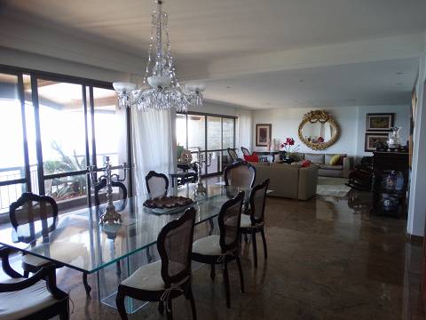Apartamento amplo e ventiladíssimo, nascente total. Originalmente 5 suítes mas atualmente possui 4 suítes, sendo a suÍte master no tamanho de 2 quartos.