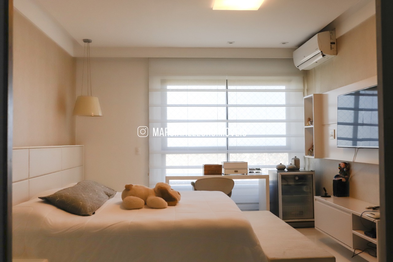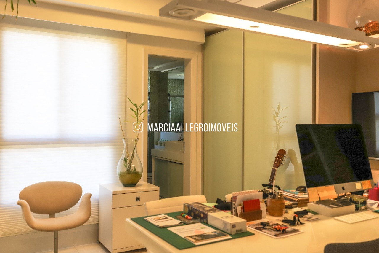 Apartamento com pé direito duplo, varanda incorporada, ar condicionado central, living, 4 suítes, rouparia, lavabo, gabinete, suíte master com mega closet e banheiro. Piso de porcelanato em todo apartamento, completo de armários; lindo projeto de decoração. Andar alto e nascente.