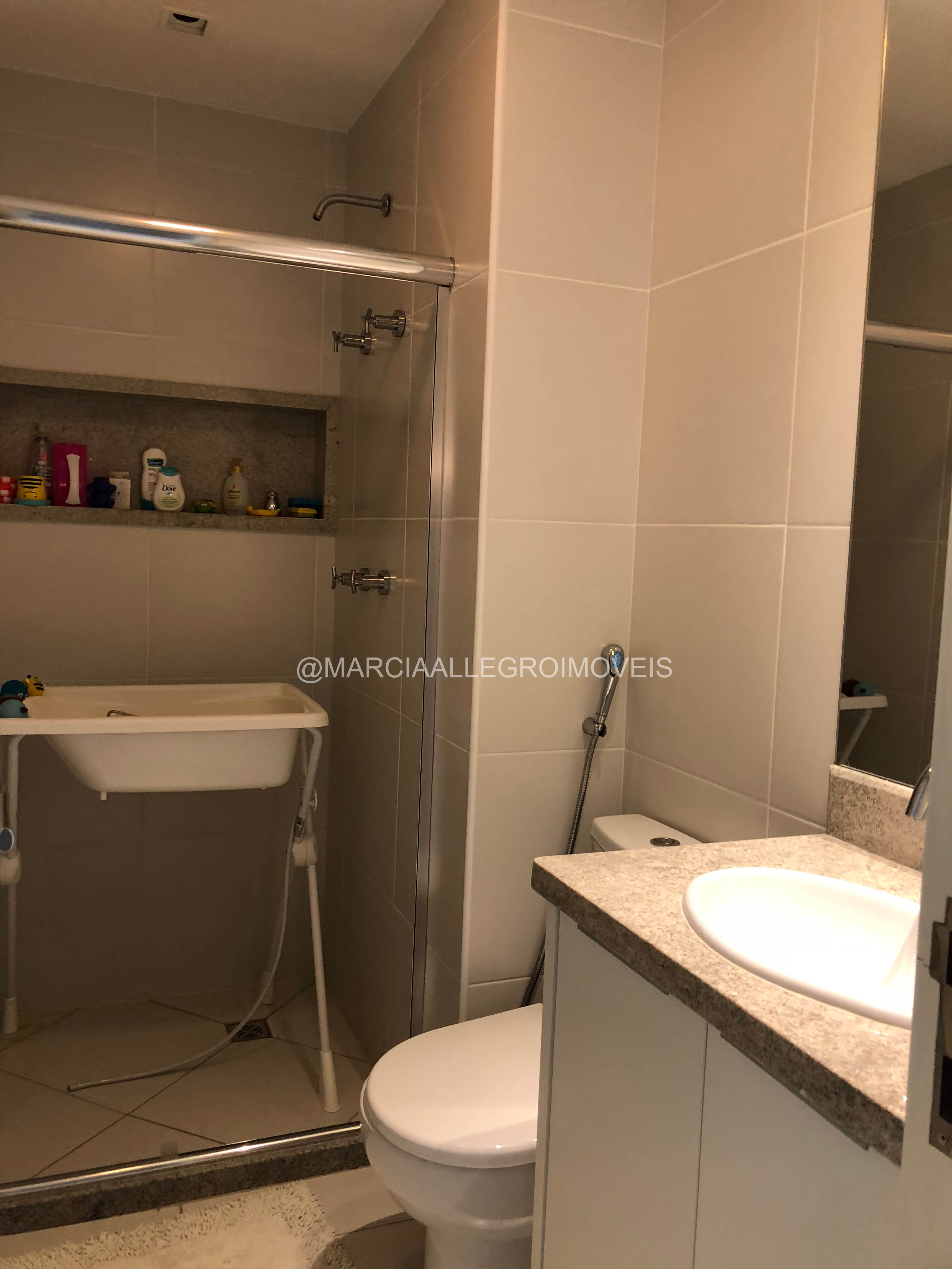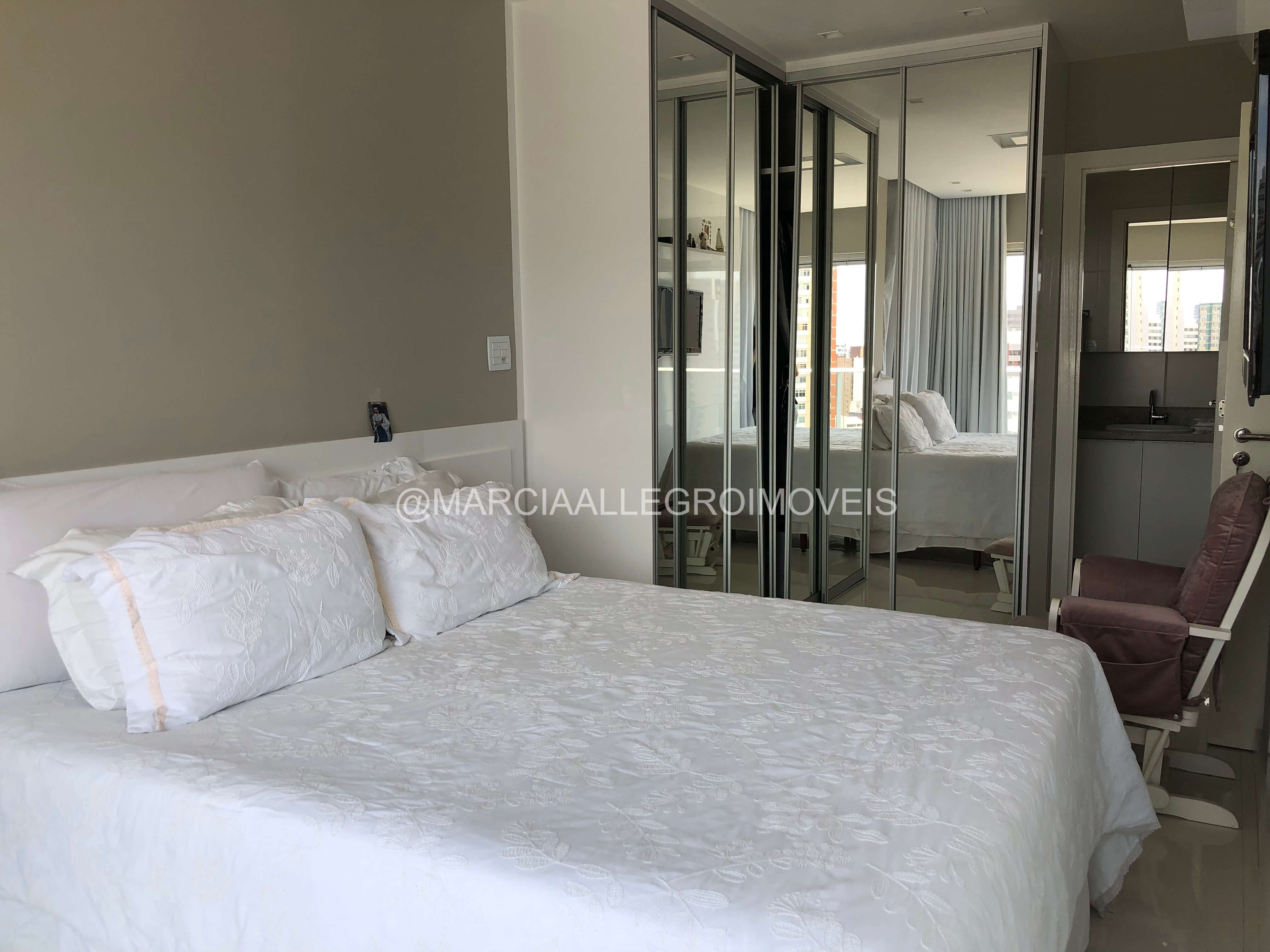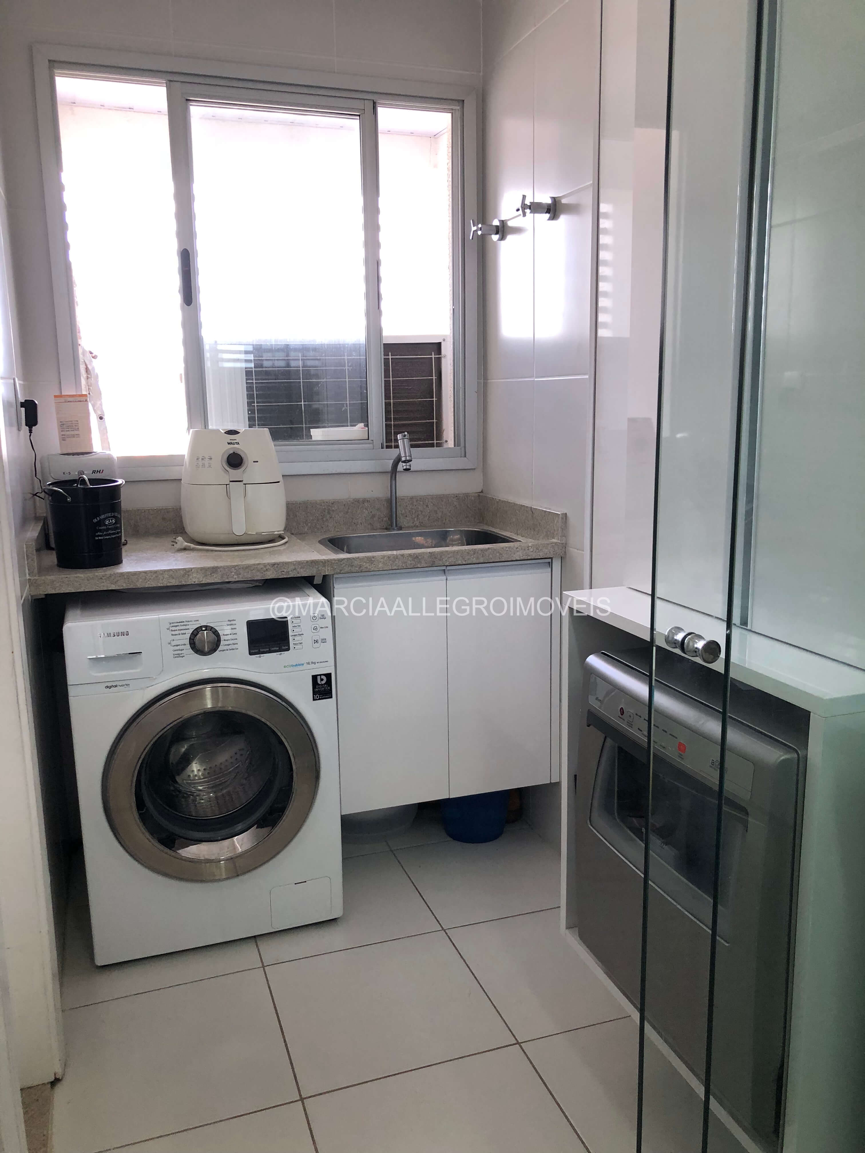 O imóvel possui 2 quartos, 1 suíte com closet, ampla sala integrada com a varanda, cozinha, pequena área de serviço e 2 vagas de garagem.