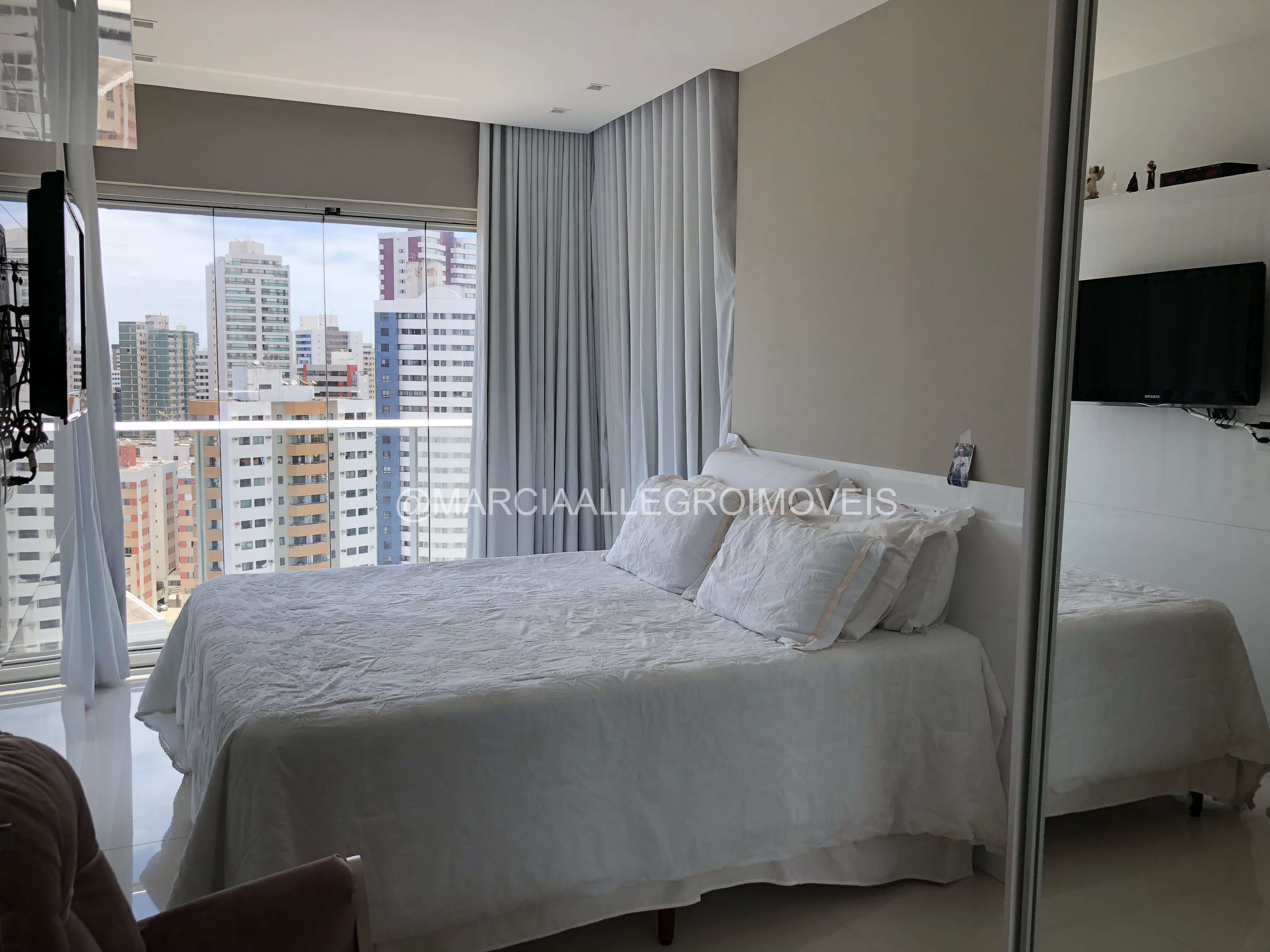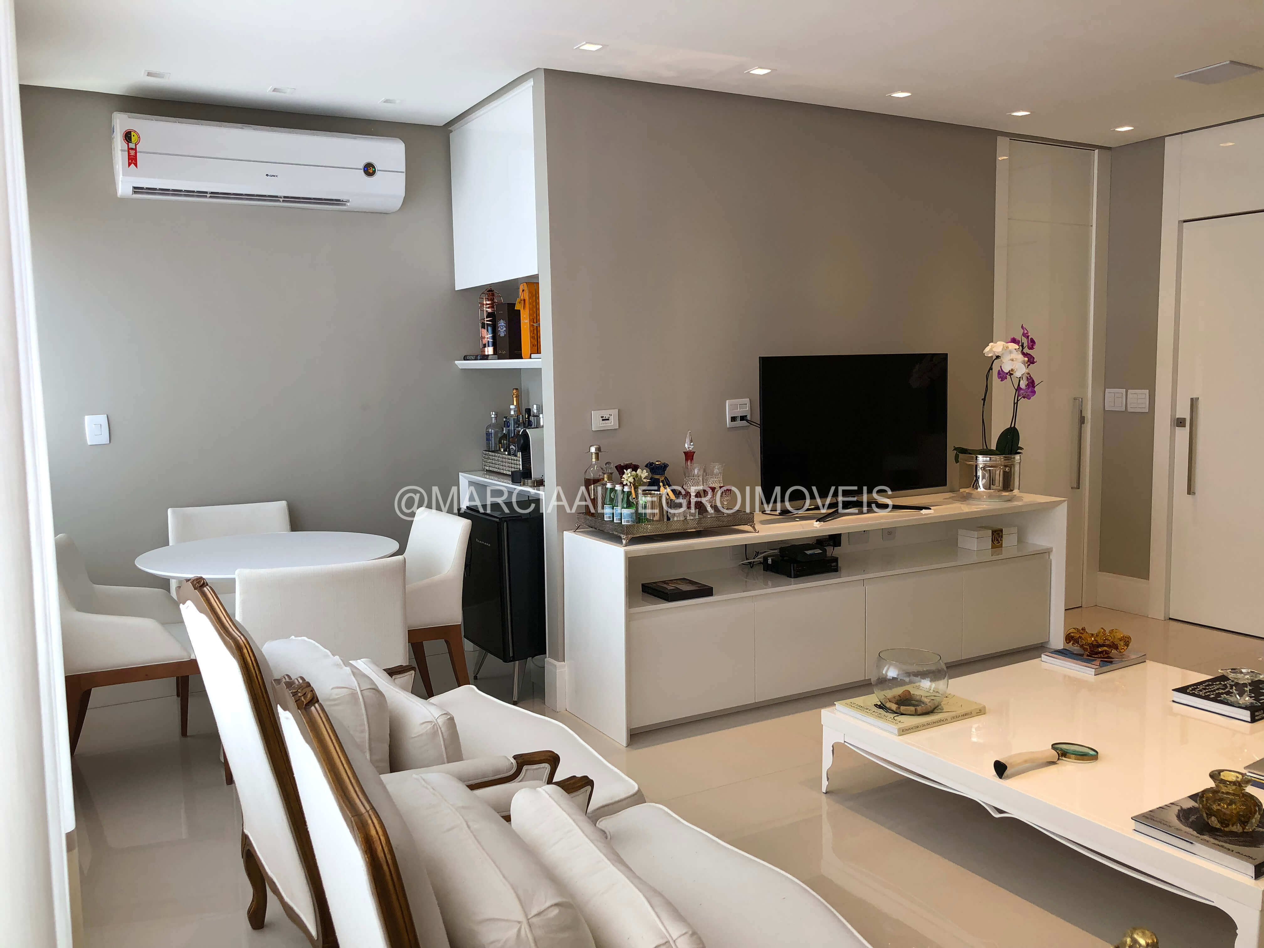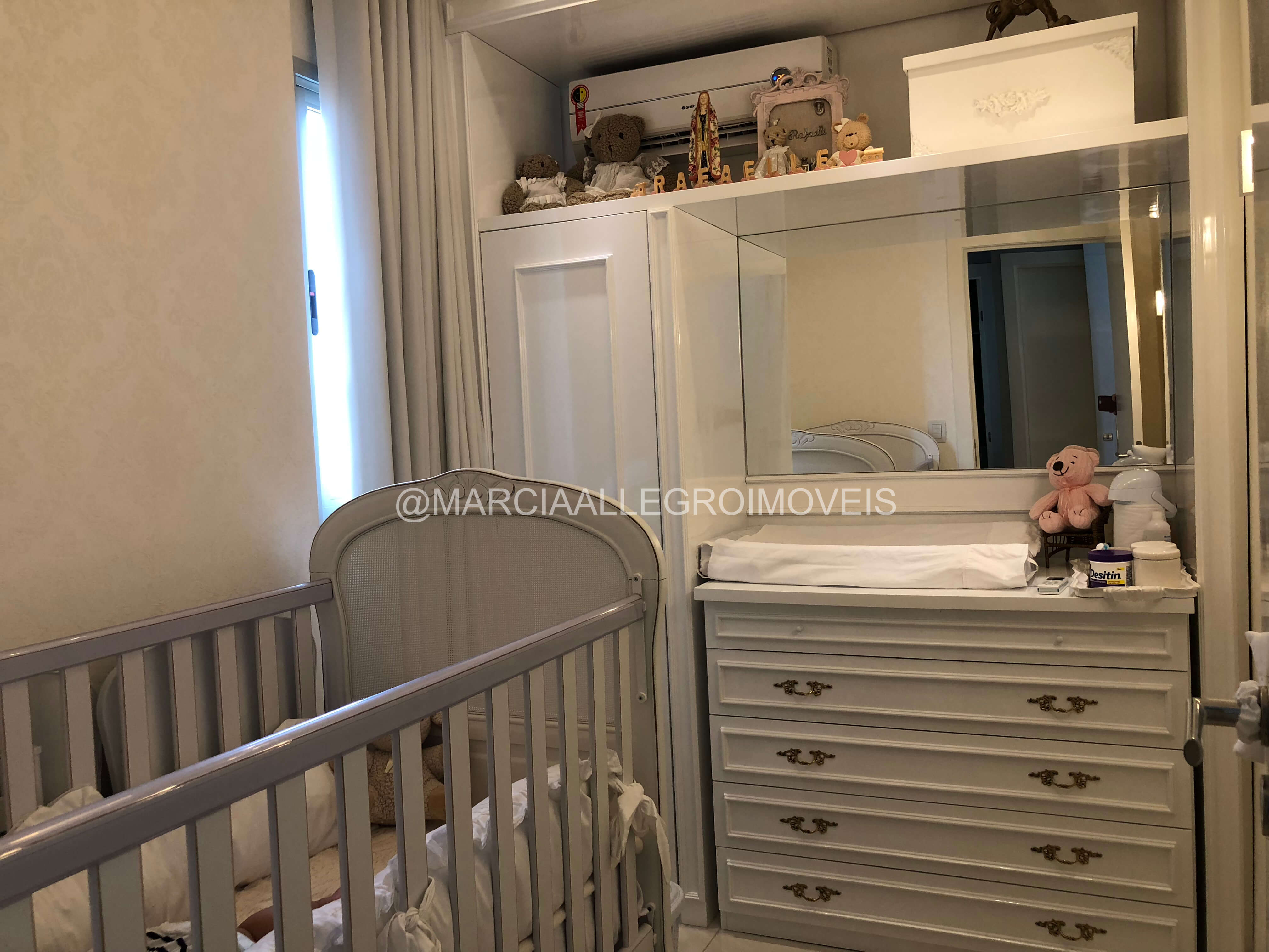 O imóvel possui 2 quartos, 1 suíte com closet, ampla sala integrada com a varanda, cozinha, pequena área de serviço e 2 vagas de garagem.