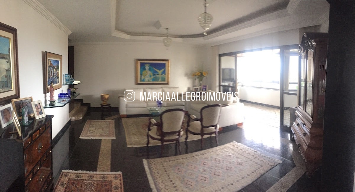 Apt amplo com 2 salas grandes, varanda, lavabo, 4 quartos, 4 suítes, cozinha, depedência.