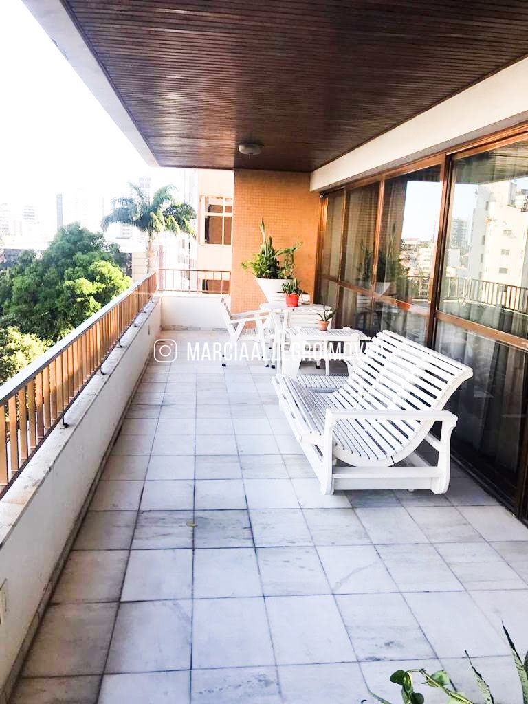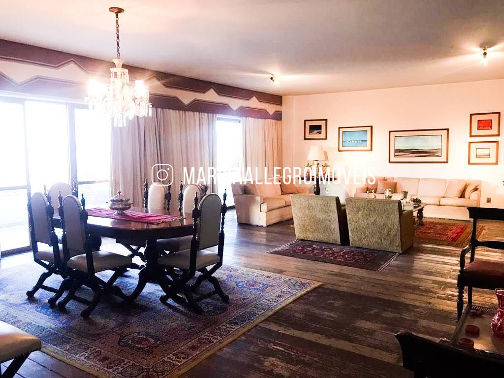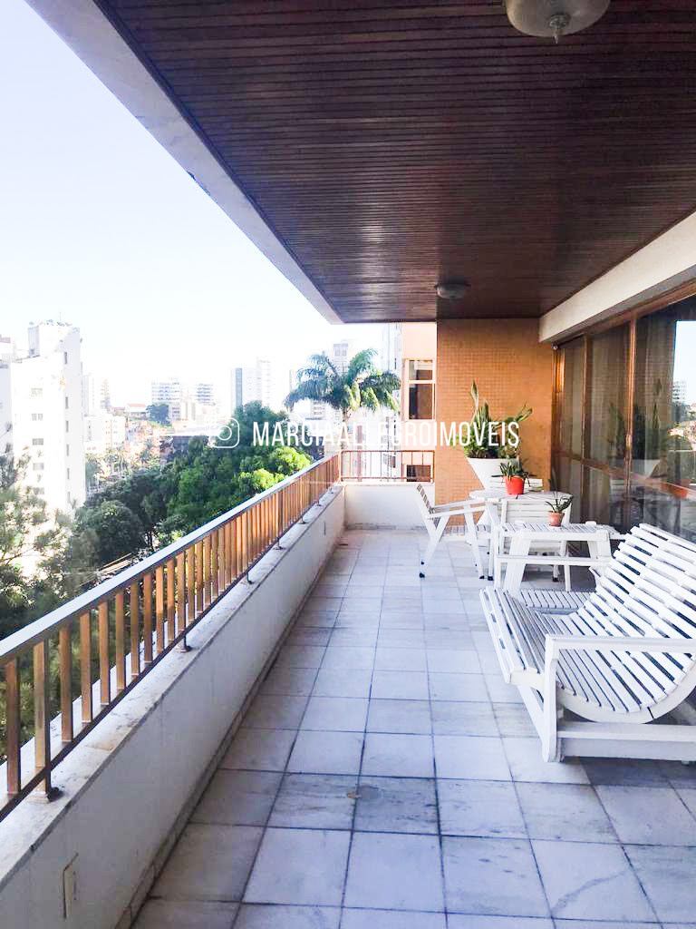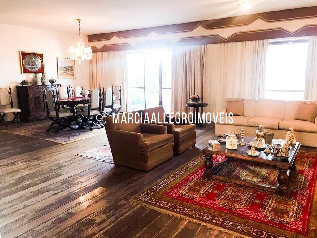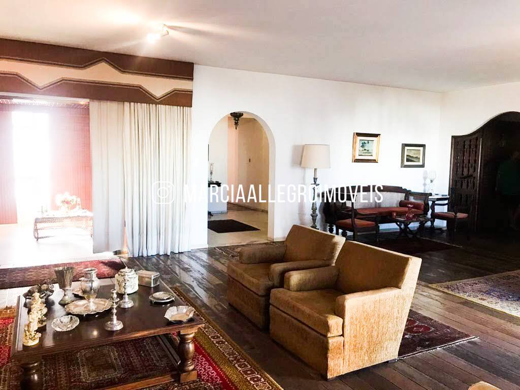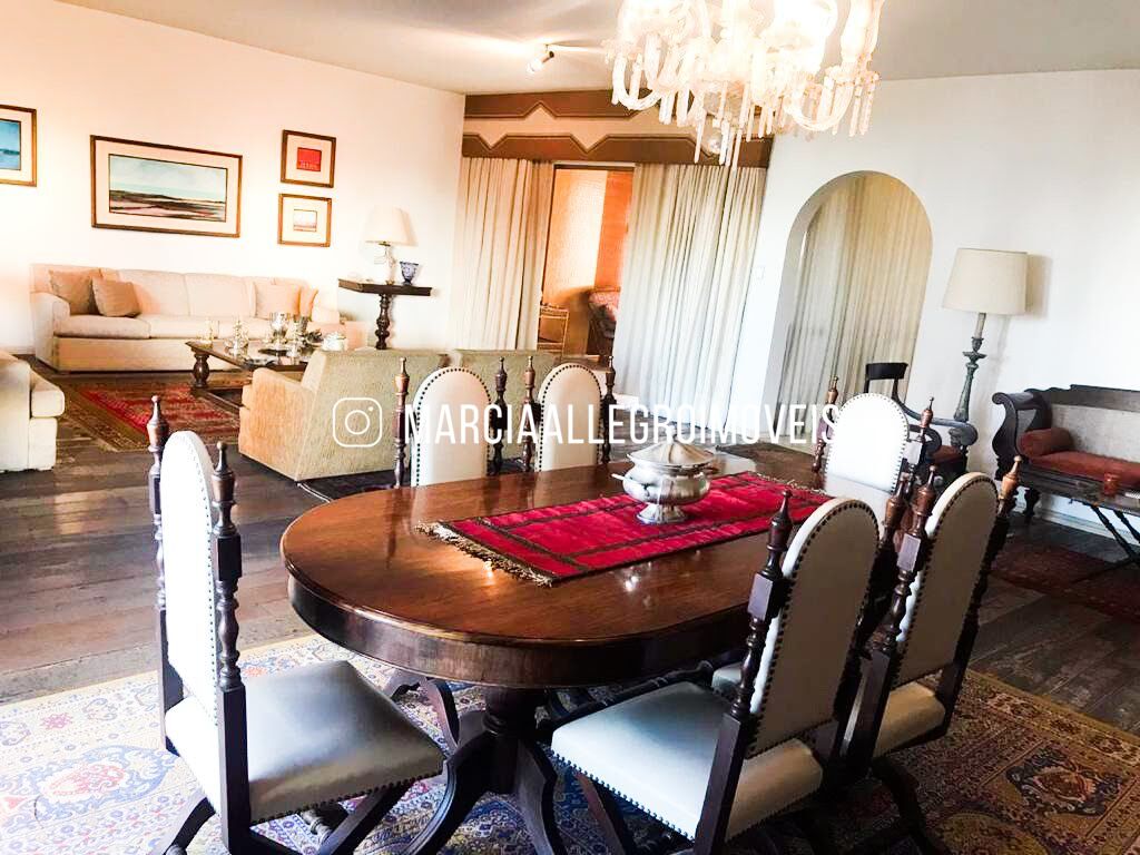 Nascente, super ventilado, 1 apt. por andar,  2 varandas, 3 salas com piso de tabuado , 1 gabinete com acesso privativo com banheiro que pode ser a terceira suíte. Atualmente com 4 quartos sendo 2 suítes com piso de taco de madeira. Apt possui mais 2 banheiros e 1 lavabo, 2 quartos de empregados com 1 banheiro, área de serviço e dispensa, 1 depósito na garagem e 1 sala de motorista com TV.