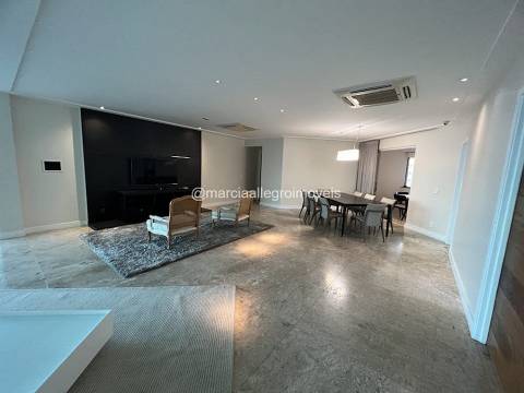 Apt com pé direito duplo, piso das 4 salas de mármore bege bahia, todas as suítes tem closet com armarios ornare. Cozinha e área de serviço com armarios kitchens. Apt todo climatizado.