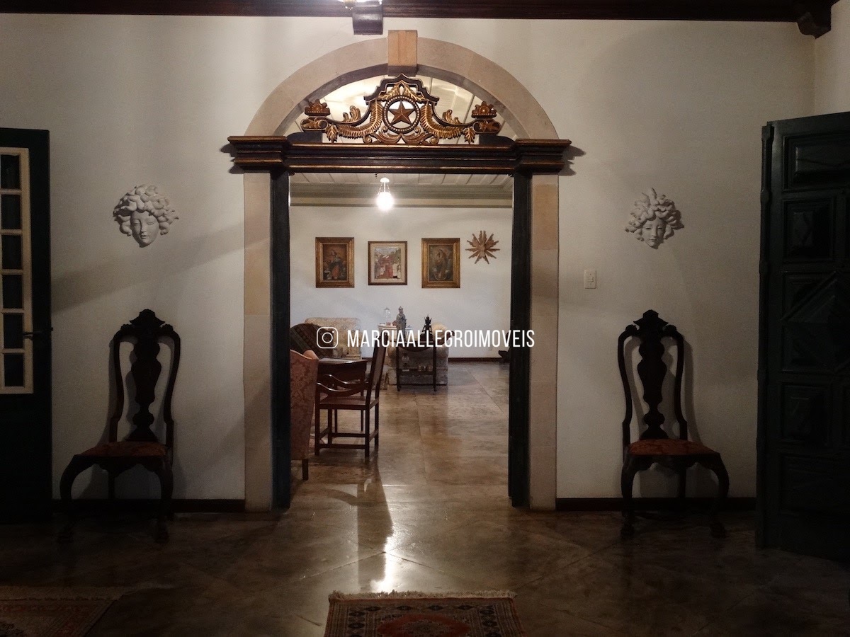 Casa enorme, produto único! Estilo Barroco mineiro, com piso de pedra jacobina polida em todas as salas e varandas, quartos com piso de pau d´arco, janelas e portas são réplicas antigas de igrejas, pé direito de 5 metros, forro de mogno e 4 metros de largura nas paredes das salas e varanda. Jardim de 3.500m2 lindíssimo, muito bem cuidado e com piscina. A casa demorou 13 anos para ser construída, detalhe a detalhe, com materiais raríssimos e da melhor qualidade.  São 4 quartos, 4 suítes, 4 salas, 1 gabinete, 2 varandas grandes, 2 lavabos, 1 cozinha, 2 dependências, área de serviço, dispensa, 3 garagens internas e depósito. Totalmente térrea. Ideal para um cerimonial!