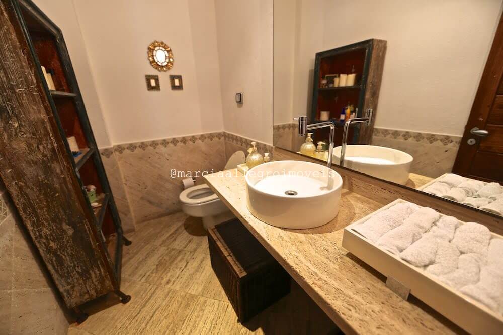 Casa excelente em condomínio fechado com infraestrutura completa, implantada em 2 lotes totalizando 1.700 m2 de terreno com 500 m2 de área construída em 2 pavimentos a 50 metros da praia.