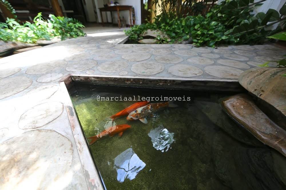 A residência ainda conta com ampla piscina com um bar flutuante e quiosque com pia com apoio para petiscar, lago com carpas com acesso subterrâneo até a para interna da casa, jardim de inverno, um belo paisagismo externo com amplo jardim além de uma garagem coberta para 3 carros.