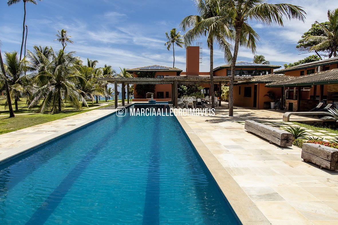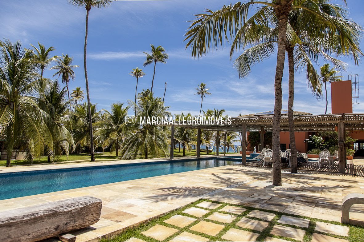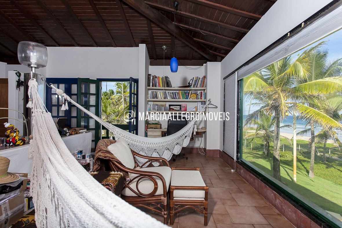 Casa pé na areia com 50m de frente para o mar e com 2 pavimentos. Possui 4 suítes no térreo e 3 suítes  na parte superior, sendo 1 suíte super ampla. Piso de cerâmica bege, sala ampla com vista mar, varandões, 3 salas, piscina, 2 lavabos, cozinha, 4 dependências, 2 dispensas, 2 pavimentos, nascente, Tanque subterrâneo que coleta toda água da chuva para o jardim, com irrigação automática.