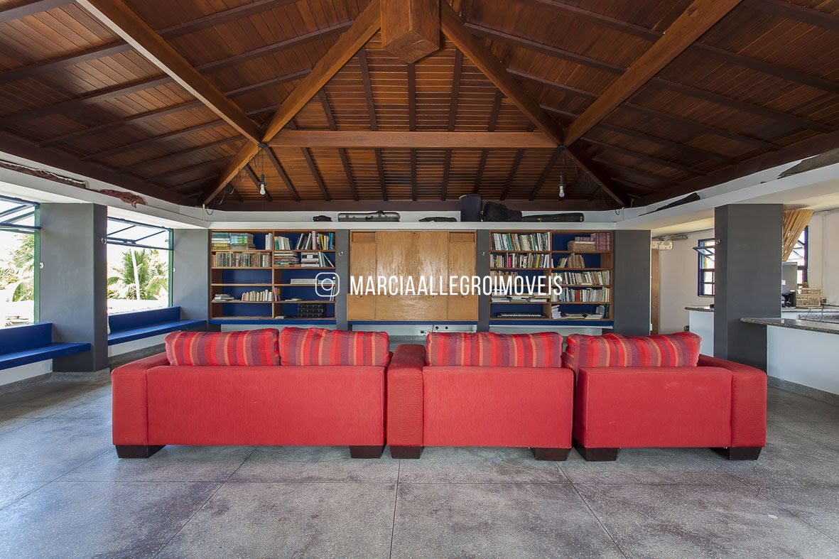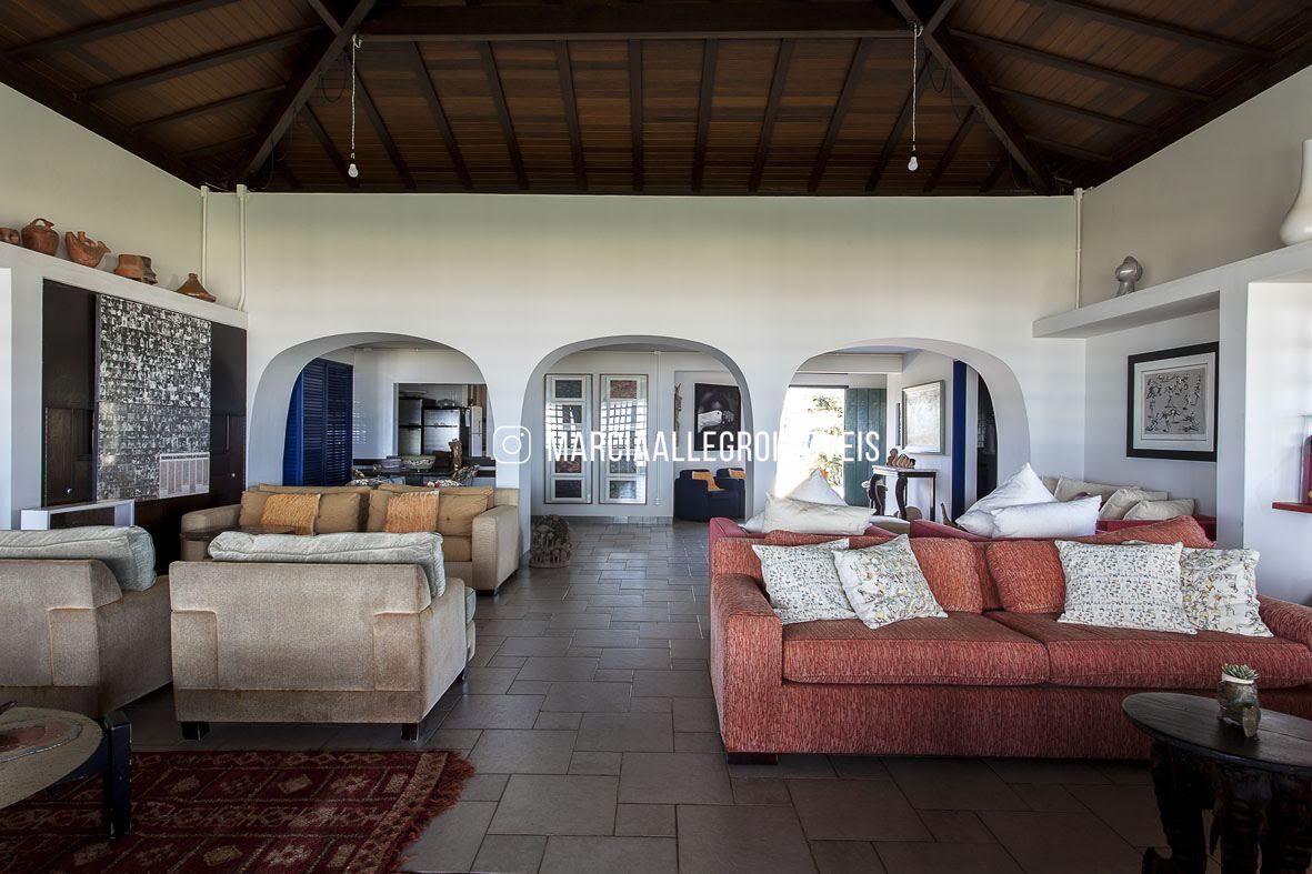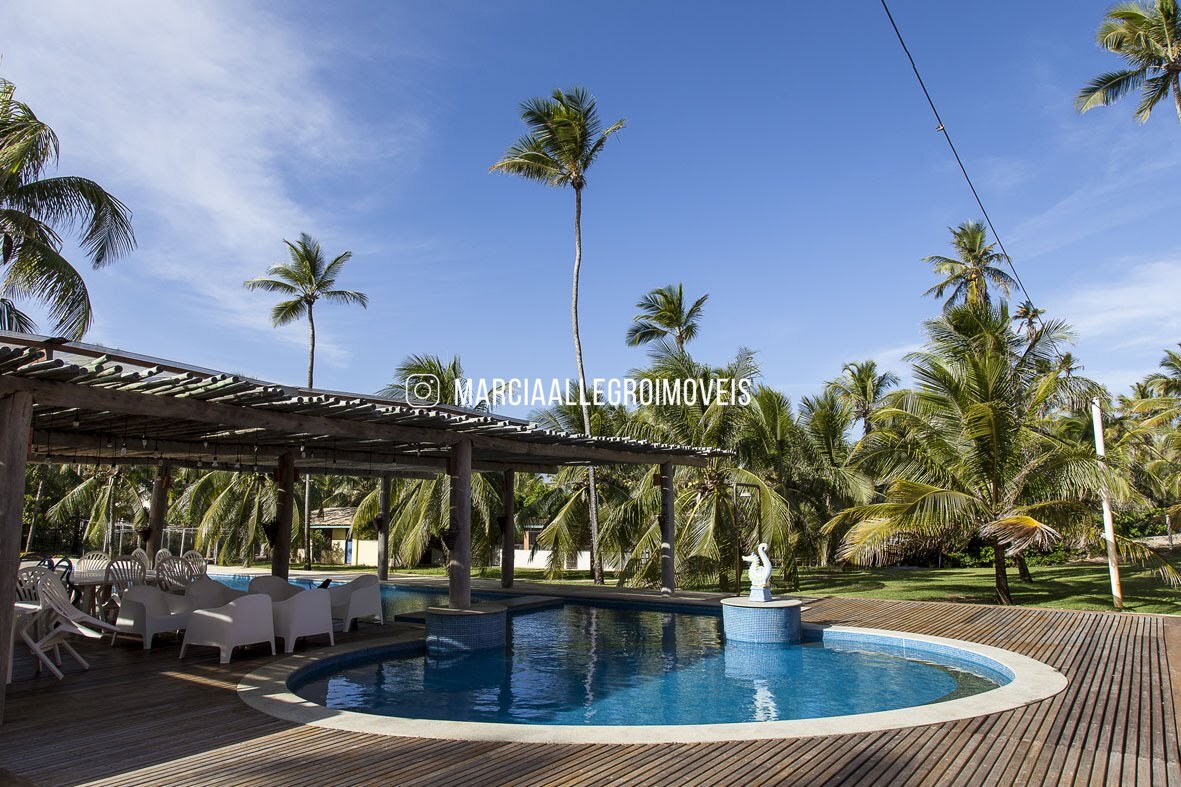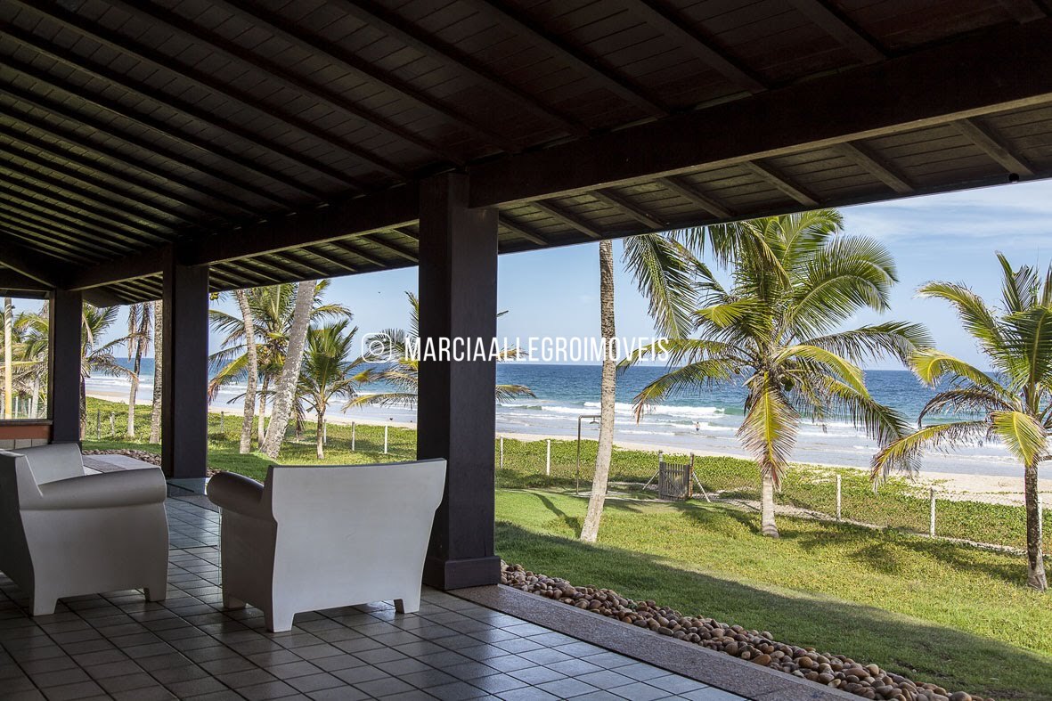 Casa pé na areia com 50m de frente para o mar e com 2 pavimentos. Possui 4 suítes no térreo e 3 suítes  na parte superior, sendo 1 suíte super ampla. Piso de cerâmica bege, sala ampla com vista mar, varandões, 3 salas, piscina, 2 lavabos, cozinha, 4 dependências, 2 dispensas, 2 pavimentos, nascente, Tanque subterrâneo que coleta toda água da chuva para o jardim, com irrigação automática.