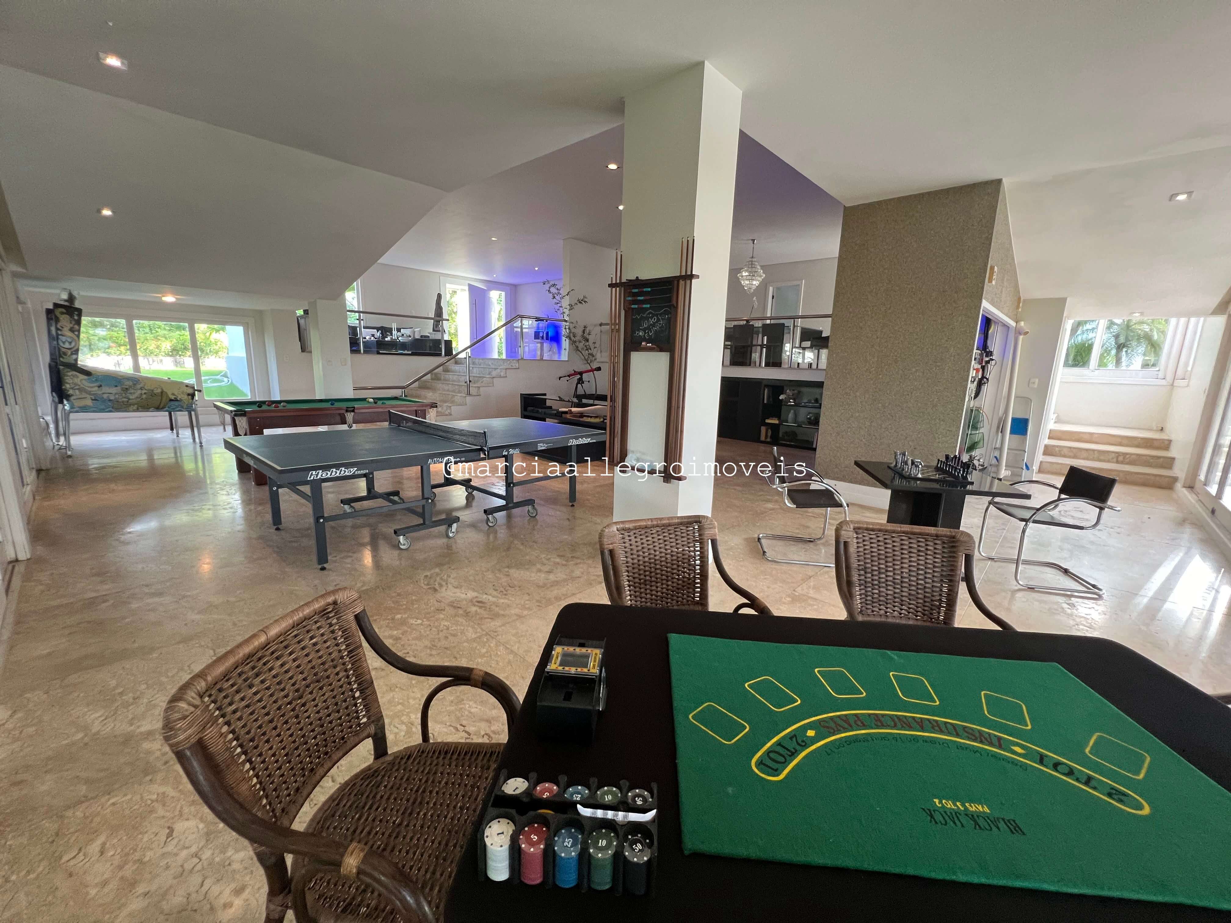 A casa possui 1.280 m2 de área construída com um terreno muito bonito de 10.000 m2 todo Gramado, sem declive, com acesso à lagoa interna do condomínio.