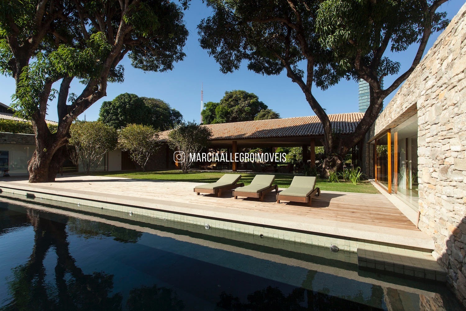 Casa com 2.000 m2 de terreno e com 1.473 m2 de área construída. Totalmente integrada com a natureza, sala de 300m2, piso de alta resistência, e esquadria da empresa paulista Plancus, forro do teto montado com madeira de demolição 3x1m de forma artesanal, uma verdadeira obra de arte. Piscina medindo 20x4m, aquecida à energia elétrica ou solar, com deck e jardim,  situada entre o ambiente da sala e das suítes.