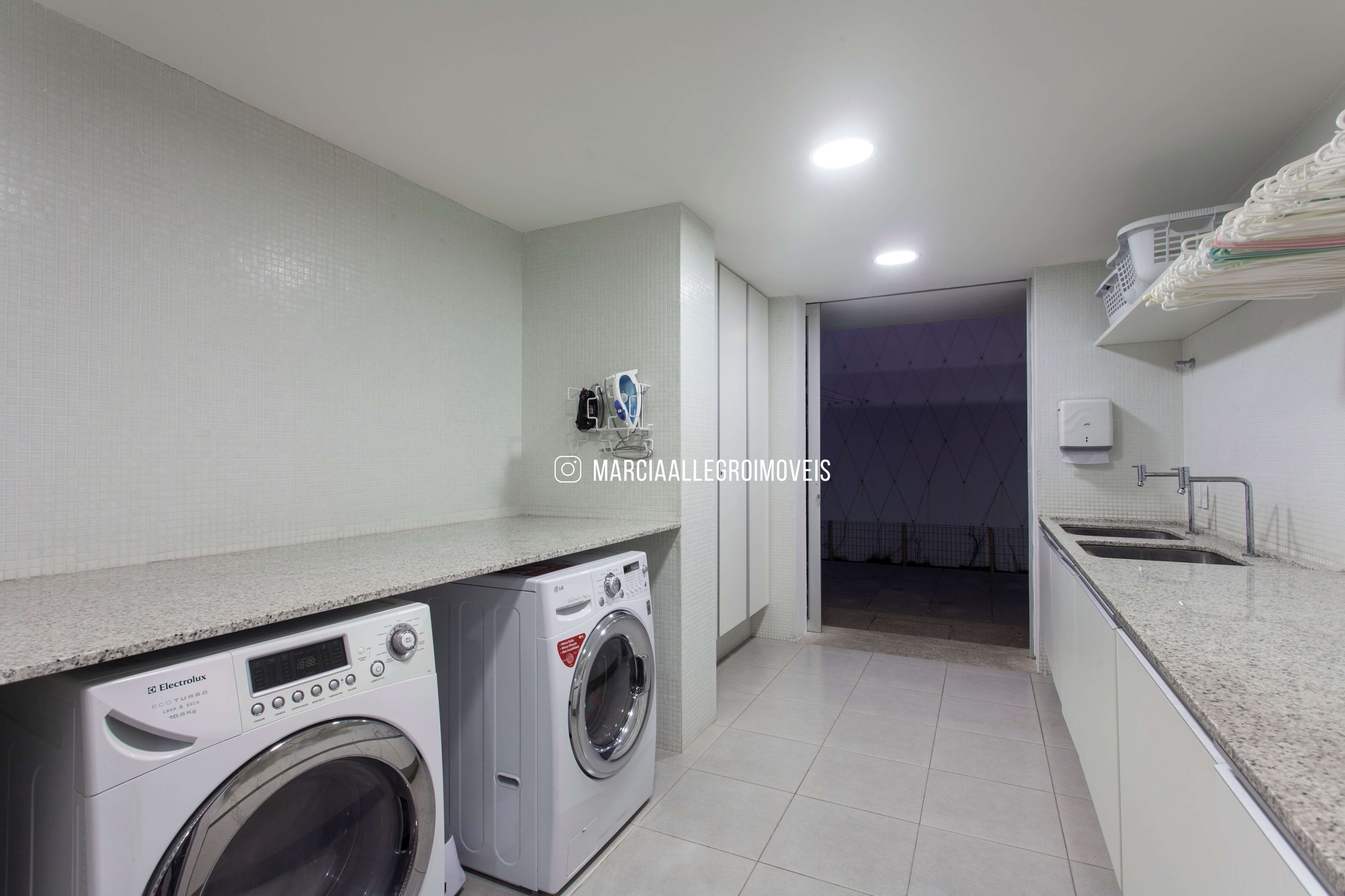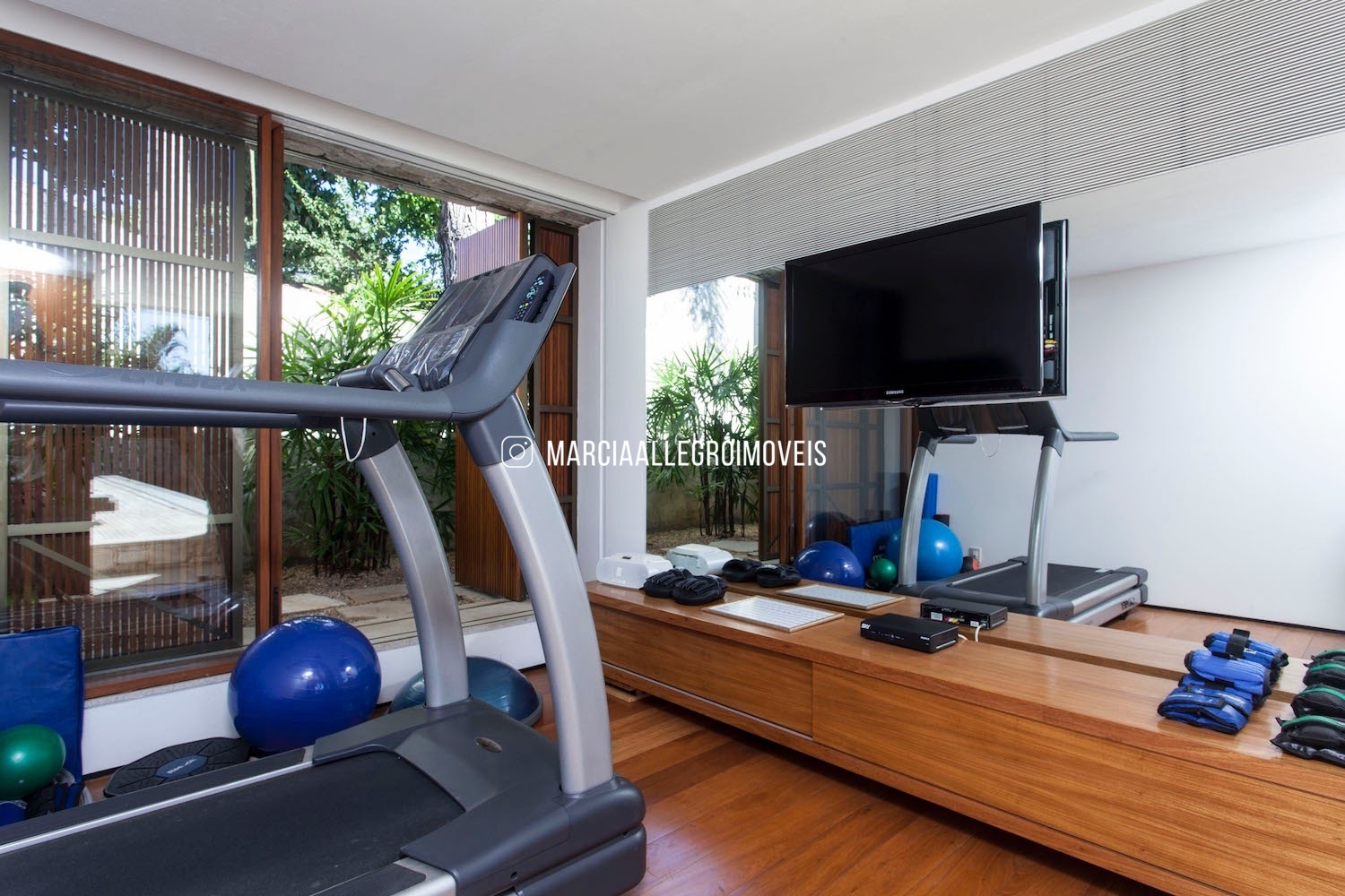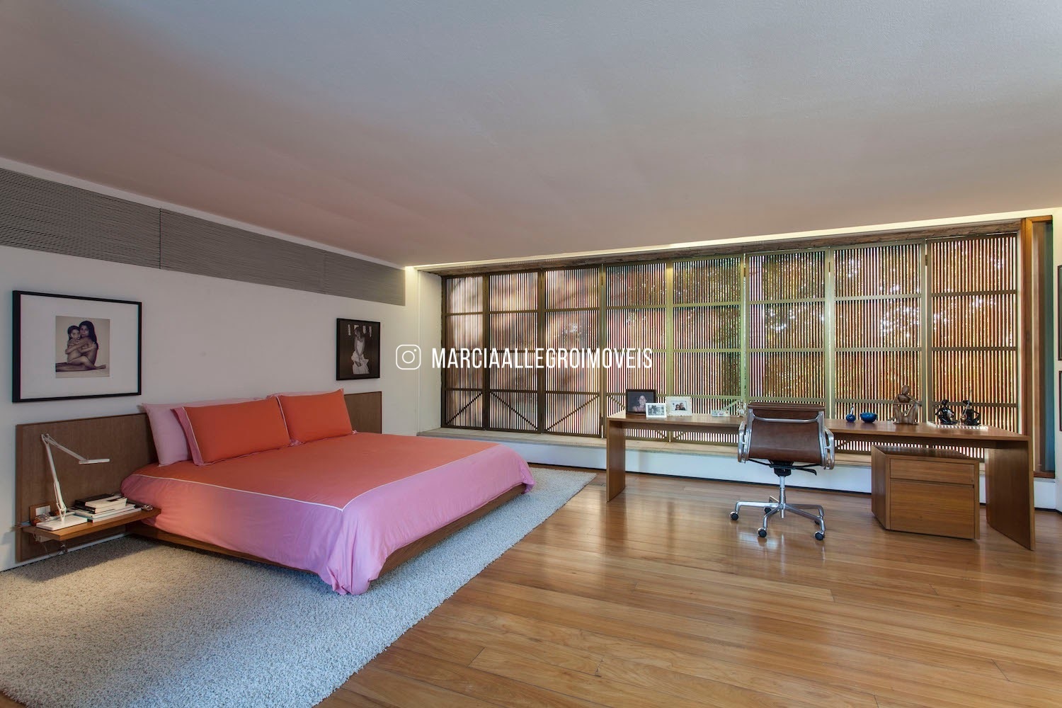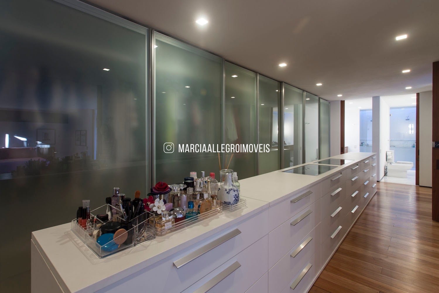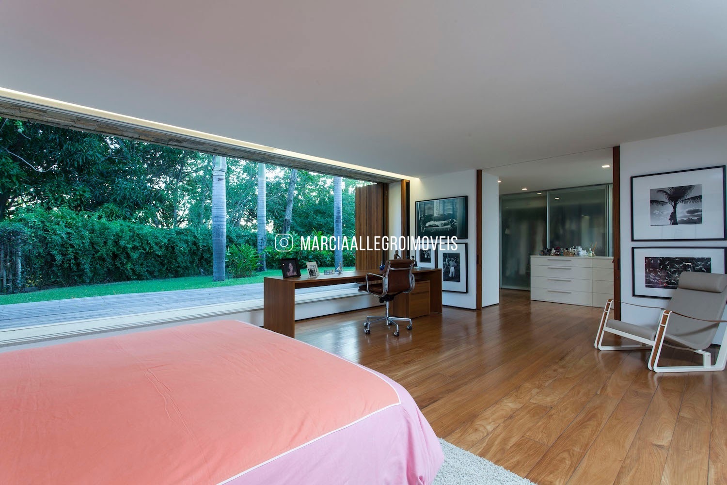 A casa dispõe de 4 suítes, 1 escritório, 1 sala de TV, 1 biblioteca e 1 sala de atividade física. Suíte master principal com um closet de 33m2 e 2 banheiros completos. Todos os armários são da Brumol (de Santa Catarina), piso de madeira peroba-rosa em todos os cómodos da casa. Cozinha com armários em madeira Freijó da Brumol. Garagem para 6 carros livres, 2 quartos com banheiros feminino e masculino, cozinha e copa para funcionários, armários em toda extensão da garagem, para malas, equipamentos e materiais de uso não diário.