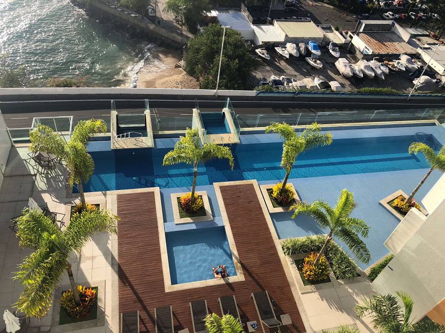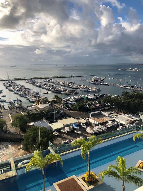 Apt 1 quarto e sala no Cloc Marina Residence, Av. Contorno. Vista maravilhosa para o mar e para a Bahia Marina. Empreendimento com total infraestrutura de lazer, piscina com borda infinita e vista mar, apartamento do jeito que a construtora entregou, com piso de porcelanato, porta de correr que separa a sala do quarto, banheiro social e demais especificações originais.